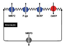 Přestup látky z krve přes střevní stěnu do lumenu střeva přispívá k množství léčiva odcházejícího ve stolici obvykle velmi málo až zanedbatelně. V úvahu připadá po intravenózním podání u léčiv s afinitou k transportérům přenášejícím léčiva z enterocytů do lumenu střeva (P-glykoprotein, BCRP).