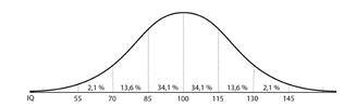 Gaussova křivka: Rozdělení inteligenčního kvocientu v populaci