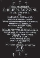 Ale zpět k Bozzinimu. Bozzini měl velké znalosti v matematice, chemii i filozofii a byl dobrým malířem, Ve Frankfurtu se věnoval porodnictví. Zemřel v roce 1809 velmi mladý, ve věku nedožitých 36 let na tyfus. Původní kamenná deska z frankfurtského dómu je dnes vložena do venkovní části stěny (obr. 1.11).