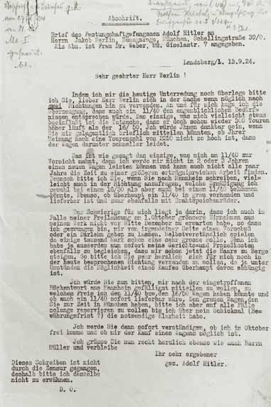 I will inform you then whether I am going to be released in October and whether I can afford to buy a car. ... Signed, your entirely devoted Adolf Hitler