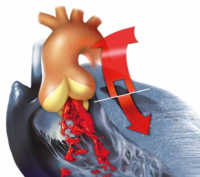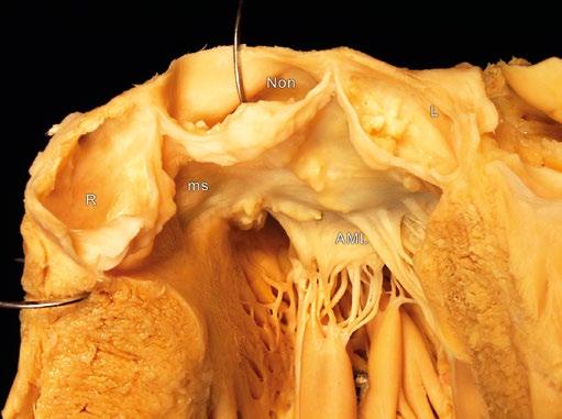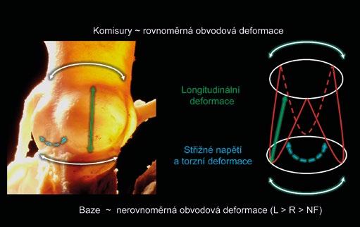 anatomických součástí aortálního kořene. V nedávné době byla popsána synchronizovaná reciproční dynamická fyziologie aortální a mitrální chlopně [24]. Aortomitrální úhel se v průběhu srdečního cyklu proměňuje, ačkoliv tyto změny nejsou přenášeny anatomickou fibrózní kontinuitou. Excesivní chirurgické zmenšení aortomitrálního úhlu vytváří podmínku ke vzniku SAM (systolického dopředného pohybu předního listu mitrální chlopně). Chlopně levého srdce mají vlastnosti související se specifickými poměry systémové cirkulace. Kromě svého pevnějšího vzhledu a vyšších gradientů, kterým musí čelit, tvoří aortální a mitrální chlopeň celek z pohledu anatomie i funkce a vyžadují specifický klinický přístup i další zkoumání. Podstatné je, že otevírání a uzavírání aortální chlopně je po záchovné operaci modifikováno [25, 26]; výkony na aortální chlopni a kořeni nevytvářejí normální aortální chlopeň a kořen, ale funkčně vyhovující chlopenní systém [27].
