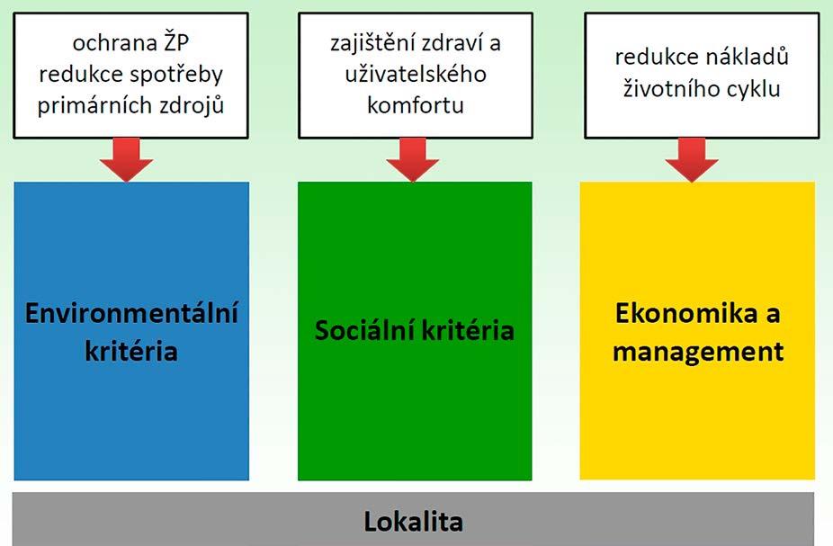 Je zřejmé, že naše moderní kultura při současném konzumním životním stylu a využívání fosilních zdrojů nemá bez zásadní změny schopnost přenechat dalším generacím vhodné prostředí pro život. Stav, kdy si bereme víc, než je naše planeta schopna dlouhodobě poskytnout, není udržitelný. Pokud bychom měli označit největší žrouty zdrojů a zároveň znečišťovatele, tak na prvním místě jsou budovy (40 %), pak doprava (33 %) a průmysl (27 %). Největším problémem je využívání fosilních, neobnovitelných zdrojů energie, které při spalování produkují skleníkové plyny, prokazatelně způsobující změny klimatu. Zaměřit se pouze na úspor y energie ovšem nestačí, a pokud chceme žít opravdu trvale udržitelně, je nutné vyvážení tří hlavních pilířů: environmentálního, sociálního a ekonomického. Tak lze dosáhnout trvalé změny, výhodné navíc pro všechny zapojené (tzv. win-win strategie). Například přínosy trvale udržitelného přístupu stavebnictví pro jednotlivce i celou společnost tvoří synergický efekt s posílením všech tří pilířů, kde přináší tyto výhody: