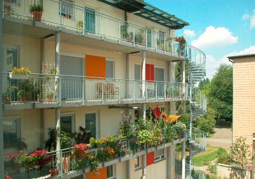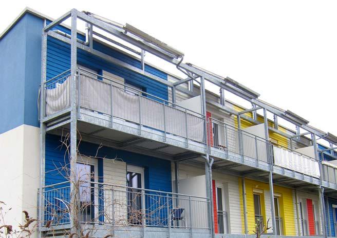 2-8 Spíš než vystupující konstrukce konzol, jsou vhodnější samonosné předsazené konstrukce, za kterými probíhá tepelná izolace bez přerušení. Bytový dům St. Jakob ve Frankfurtu (Architekt: Faktor 10. Foto: CPD)