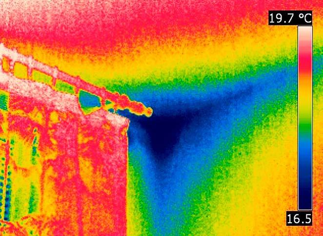 2-6 Oslabená místa lze odhalit například termovizním snímkováním. Často k tomu bohužel dochází až v okamžiku, kdy dojde k poruchám. Vhodnější a výrazně levnější než následná sanace je tepelnětechnické posouzení detailů ve fázi návrhu (Foto: Miloš Kalousek)