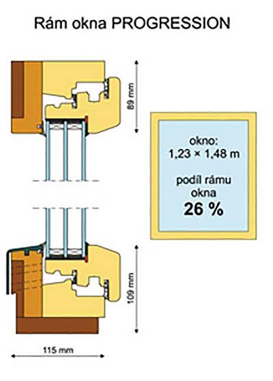 • Rám okna nepřináší žádné solární zisky, jen ztráty, a měl by být co nejnižší