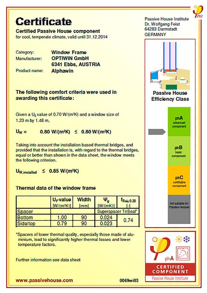 2-12 Osvědčení rámů oken vhodných pro pasivní domy splňujících kritéria certifikace Passivhaus Institutu (Zdroj: www.passiv.de)