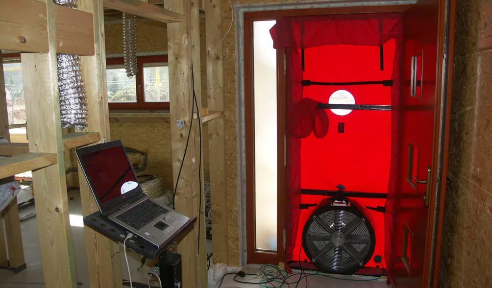 2-24 Test těsnosti v průběhu výstavby po dokončení vzduchotěsnicích opatření (Foto: Stanislav Paleček, Radion)