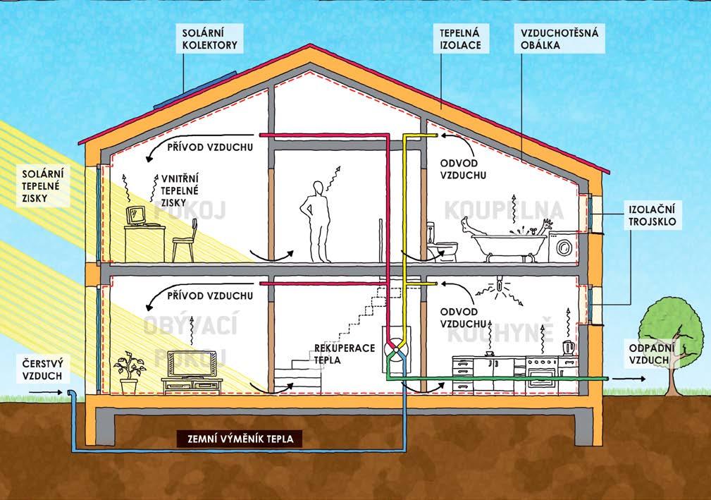 • v ysoce izolovaná obálka budovy pro snížení tepelných ztrát;