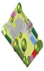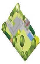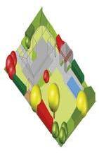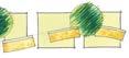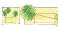 1 dům, 2 záhony, 3 vegetační lem – keře, 4 trávník pohled