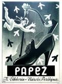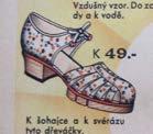„Jednou se snad dočkáme i toho, že se budou vyrábět přepychové dřeváčky k večerním toaletám, čímž bude dokonale rehabilitován Špejbl, jenž nosí dřeváky, jak známo, k večernímu žaketu,“ 55 komentovala redaktorka náhlý boom dřeváčků na jaře 1940. Když se obuv s dřevěnou podešví objevila ve výlohách i na stránkách časopisů, pohlížely na ni ženy s nedůvěrou. Firma Baťa se sice vždy zaměřovala i na výrobu nekožené obuvi, ale vzpomínky na dřeváčky z 1. světové války příliš optimistické nebyly. Tehdy ovšem vypadaly zcela jinak: „Byla to vpodstatě prkýnka připevněná na nohu popruhovými řemínky a aby byla ohebná, byl podešev v polovici přeříznut a spojen rovněž popruhy. Opatek byl rovněž z náhražkové látky a přibit primitivními hřebíky tak, že rozdíral paty do krvava.“ 56 Říkalo se jim „klapačky“, protože vydávaly velký hluk, takže je děti ve školách často musely odložit a učit se na boso. „Vzpomínku“ je třeba brát s rezervou, protože vznikla v době, kdy bylo třeba propagovat „nové, moderní, krásné, veselé, barevné, zdravotně nezávadné, vzdušné a pohodlné“ dřeváčky.