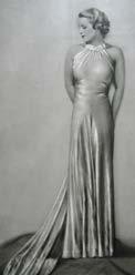 Večerní toaleta „Princess“ ze žehleného sametu lososově růžové barvy, model Hanna Podolská, 1936.