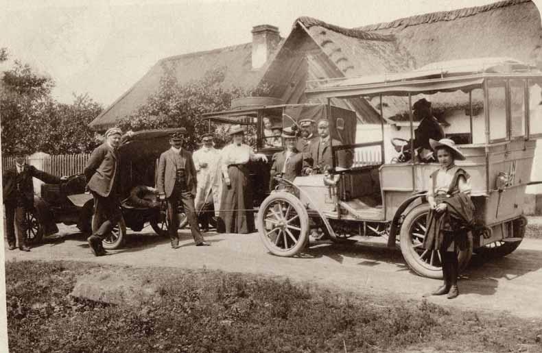 Zajímavá momentka z výletu přátel třemi automobily. Světlý vůz vpravo (nejedná se o L&K) patří pražskému stavebnímu radovi Josefu Rosenbergovi, jenž v listopadu 1904 inicioval založení Českého klubu automobilistů (ČCA), který se 20. března 1904 ustavil. Pan rada má zřejmě problém, protože jeho vůz je připojen lanem k vpředu stojícímu vozu L&K typ B