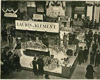 Pánové Laurin a Klement se tedy na výrobu automobilů cílevědomě připravovali. Když zvažovali, jaký typ by domácím zákazníkům vyhovoval, dospěli ke správnému názoru, že by měl být finančně dostupný nejen těm nejmajetnějším, ale také představitelům vyšší střední třídy. Kudy se továrna hodlá vydat, naznačila na I. mezinárodní výstavě automobilů, motocyklů a kol v Praze, která se konala ve dnech 23. až 25. dubna 1905. Na rohu jejího stánku se na podstavci skvěl dvouválcový kapalinou chlazený dvouválec. Snímek z titulní strany Sportu a her č. 12 z 26. dubna téhož roku je téměř symbolický: návštěvníci firemního stánku obhlížejí nejrůznější motocykly, ale u dvouválcového automobilového motoru na prominentním místě ani noha. Heinz věnuje motoru v obsáhlém referátu o expozici mladoboleslavské továrny jedinou větu: „Tak jest tu dvouválcový motor o 14 k. s. pro vodicí stroj na závodní dráhu; asi stejně silný V motor pro vůz s vodním chlazením napovídá, že továrna pilně se zabývá studiem vozů a koná v tomto oboru i pokusy.“
