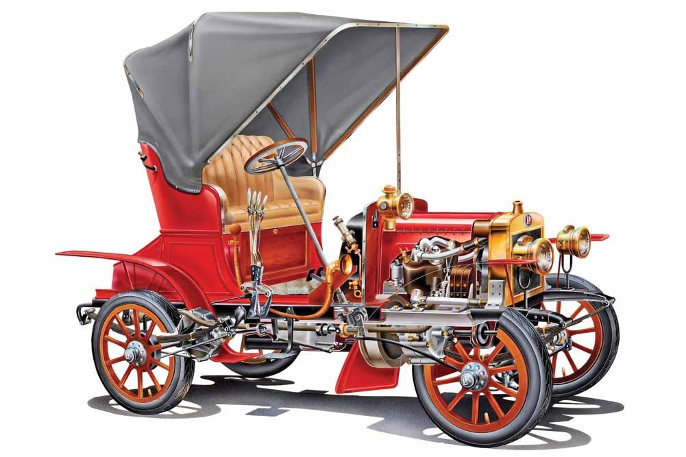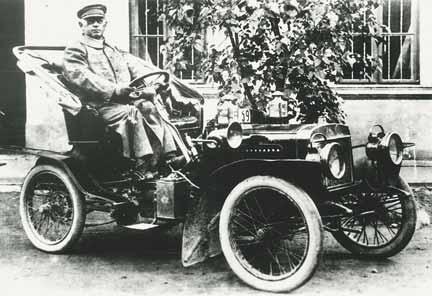 Pro instrukce byli důstojníci a mužstvo předem posláni do různých továren. Náš obrázek ukazuje vojáky ve známé továrně na motorové dvoukolky Laurin & Klement, Mladá Boleslav. Pánové na obrázku jsou odleva doprava: pan Klement za volantem prvního vozu, který Laurin & Klement vyrobili, setník Robert Wolf z vojensko-technické komise, který přijel na inspekci, poručík Carl Stohansel, poručík Adalbert Mastinger, čtyři poddůstojníci a instruktor Podsedníček. Během 1400kilometrové zkušební jízdy vedl každý jezdec přesnou knihu o stavu silnic, spotřebě benzínu, opravách atd. Ani jeden z jezdců neměl příležitost vyplnit něco do rubriky oprav.“ Podle toho je jisté, že svůj první automobil zhotovili nejpozději v létě 1903.