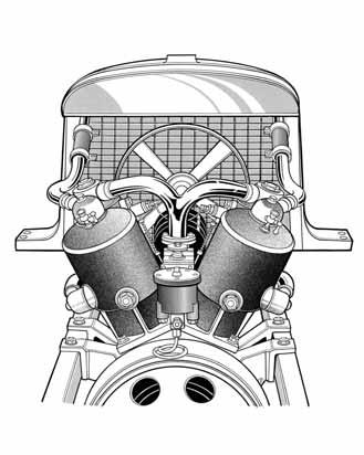 Další krůček ve dvou stopách vznikl spojením dvou motocyklových rámů s pohonem kapalinou chlazeným motorem L&K