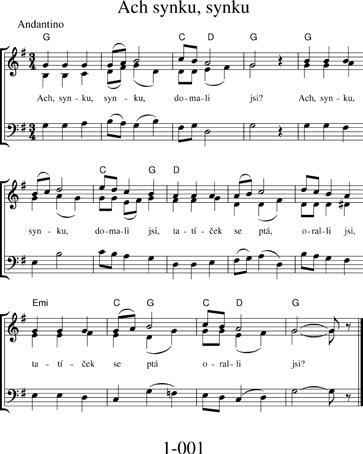 Akordické značky pro kytaru nebo klávesový nástroj jsou uvedené záměrně v nejjednodušší podobě a lze je použít pouze tehdy, je-li píseň zpívaná jednohlasně (unisono).