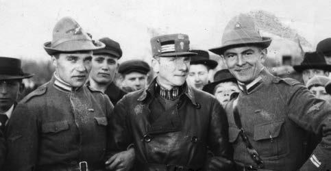 The rst Commander of the Czechoslovak Army Air Corps – Captain Jindřich Kostrba accompanied by two aviation legionaries from Italy, immediately after their return to Czechoslovakia on January 11th, 1919. On the left is pilot Sgt Jindřich Brejla and to the right observer W/O Mirko Dostál. The bullion embroidered Italian air observer badge is discernible on the sleeve of his legionary uniform. Copy from the NTM archive via Lukeš.