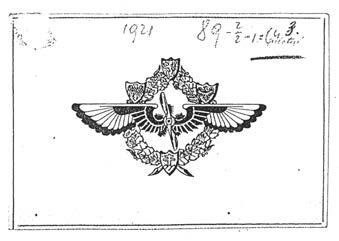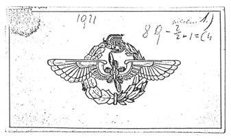 Proposed graphic design of the Pilot Badge (a variant) from 1921. Copy VHA