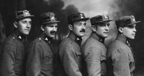 Servicemen of the Czechoslovak Air Corps in the modi ed Austro-Hungarian uniforms with uno cial aircraft badges in a photo from 1919. Copy Poláček collection.