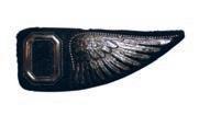 Left half of the most widely used variant of the badge with an aircraft emblem produced from light alluminum alloy. This badge had no attachment ttings and was sewn upon the uniform. Non-original needle added to this example. It is not known if there were two colour variants as with the balloon badge, or only the silver version depicted here. Author’s collection.