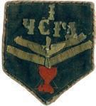 Improvizovaná a nepochybně v polních podmínkách vyrobená nášivka příslušníka Samostatného leteckého oddílu 1. Československé střelecké divize „Husitské“ z roku 1918. Nachází se na ní zkratka I. ЧСГД, vytvořená z malých plechových azbukových písmen, dále malý plechový emblém okřídlené vrtule, který v té době na náramenících používali někteří příslušníci carského letectva, a červený látkový emblém husitského kalicha. Sbírka Poláček.