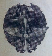 Fotogra e sovětského odznaku Karla Kuchařského z roku 1920. Repro Letectví a kosmonautika č. 11/1965. Soviet badge of Karel Kuchařský on a photo from 1920. Copy from Letectví+kosmonautika issue No.11/1965.