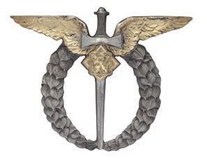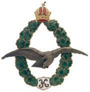 Late version of the Austro-Hungarian Army Field Pilot Badge and General Flyer Badge (badge used by Observers, Gunners and other ying personnel) produced by the court contractor company J. Zimbler of Vienna. Author’s collection.