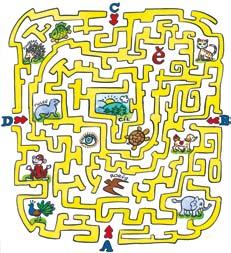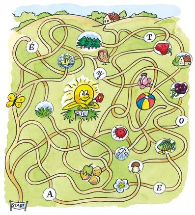 Najdi cestu bludištěm od startu do cíle a zapiš si písmenka, která potkáš, nebo začáteční písmeno obrázku. Pak se dozvíš tajenku.