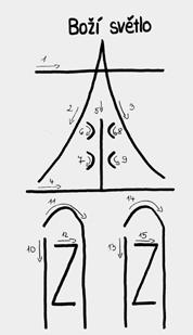 1. Symbol „Boží světlo“ (viz obr. 1) můžeme nakreslit na dveře nebo na papír a pověsit na intuitivně zvolené místo, taky prstem do vzduchu vytvořit tento symbol uprostřed každé místnosti, či vizualizovat.