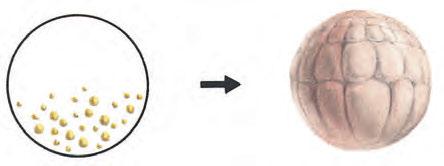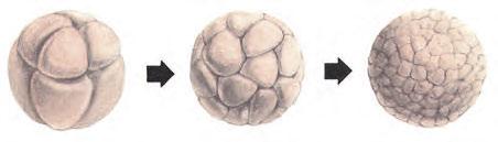 Oplozené lidské vajíčko se dělí, rýhuje, za svého postupu vejcovodem do dělohy. Rýhování je totální aekvální. Stadia dvou buněk (blastomer) je dosaženo přibližně za 20–30 hodin, čtyř buněk za 40–50 hodin od oplození; stadium dvanácti až šestnácti buněk se objevuje za 3 dny, typická morula je vyvinuta na konci 4. dne (obr. 50). Již vtomto stadiu je určen příští osud buněk: vnější buňky vytvoří obal, vnitřní buňky moruly vytvoří vlastní zárodek.