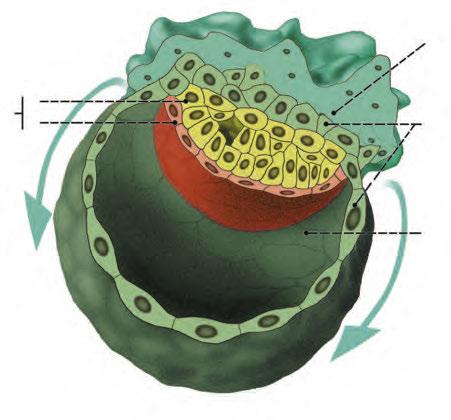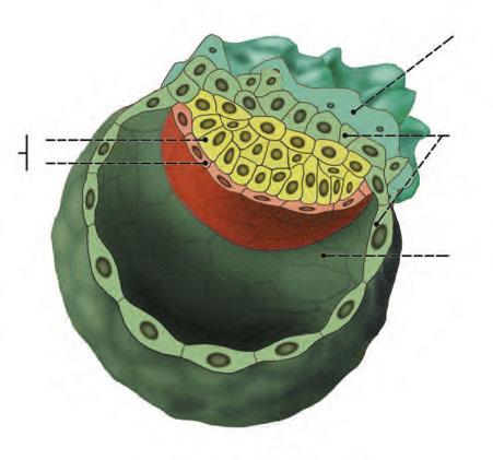 obr. 52. DiFeRenciace embRYobLaStU atRoFobLaStU a diferenciace buněk epiblastu a hypoblastu, cytotrofoblastu a syncytiotrofoblastu b vznik dutiny amniového váčku; šipky ukazují růst syncytiotrofoblastu