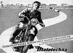 Reklamy národního podniku Mototechna z roku 1950 měly příznačný ideový nádech