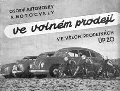Reklamní leták Ústřední prodejny motorových vozidel z roku 1949 informuje o zavedení volného prodeje motorových vozidel v Československu