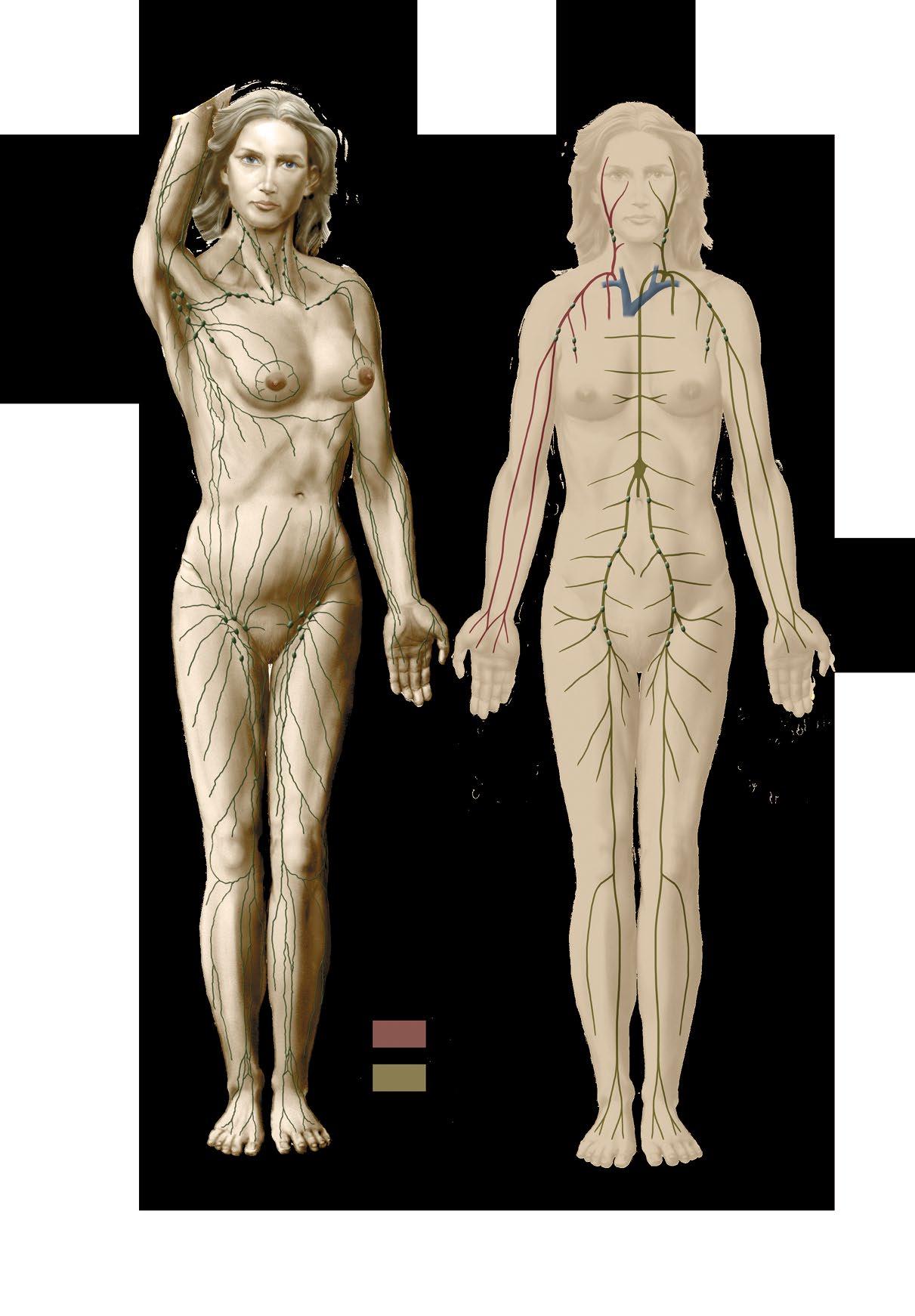 a superficial lymphatic vessels and lymph nodes b main lymphatic ducts