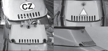 motor: dva klasické motocyklové výfuky – rybiny, jako příplatková výbava bylo zavedeno vnější ovládání přeplavovacího kolíku karburátoru (vyvedeno postranními