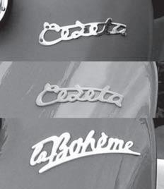 Porovnání názvů skútru Čezeta vyrobených v Českých Budějovicích. Začínalo se chromovaným, později byl plastový. Název „la Bohème“ byl určen pro francouzsky mluvící země