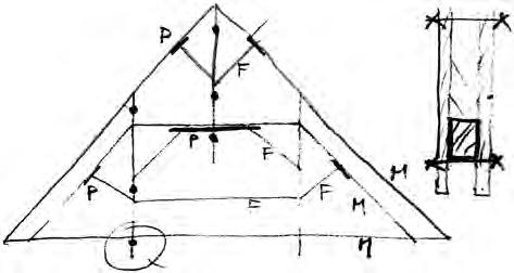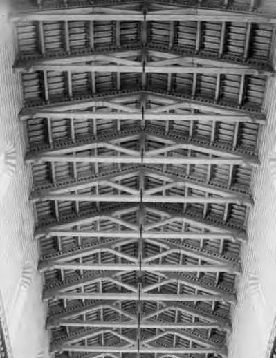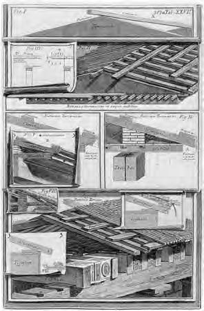 Konstrukce navazující na antické krovy (viz Fano, tabule 7).