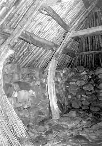 Old West Highland (Skotsko), krov venkovského chléva, 18. až 19. stol., sklon ~ 40°