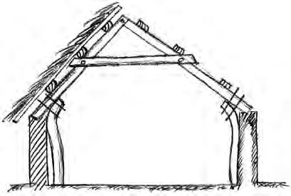 Příklad efektivní konstrukce 19. století, která umožnila užití dřeva menších profilů. Krov nemá vazné trámy, klenuté vzpěry přenášejí zatížení do pozednic ve svislém směru, působení vodorovné síly je minimalizováno.