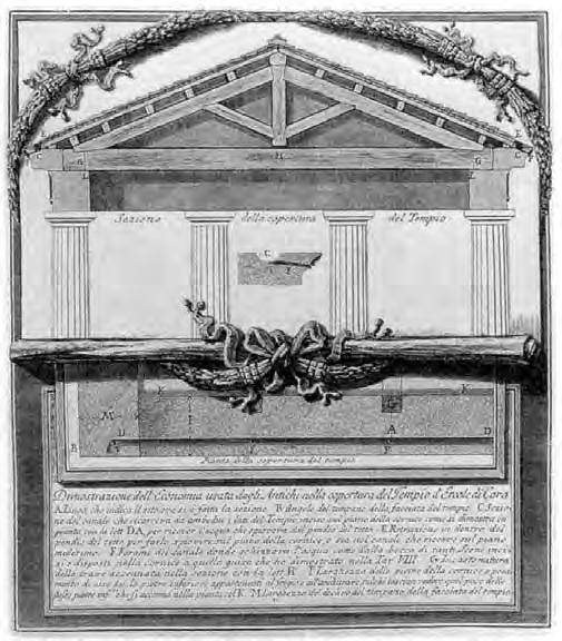 Střešní konstrukce dórského chrámu, sklon 15° [Piranesi, 1761]