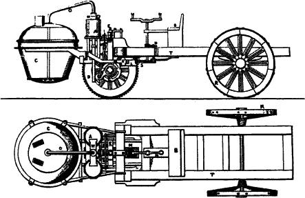 Za autora prvního funkčního vozidla s vlastním pohonem je pokládán Nicolas Joseph Cugnot (1725–1804). Kapitán francouzské armády Cugnot byl nadaným vynálezcem, ale na pokusy s parním strojem mu chyběly finance. To se změnilo v roce 1764, kdy se mu podařilo pro svůj projekt „mechanického koně“ získat ministra války, markýze de Choiseul. Ten Cugnota pověřil zhotovením parního traktoru pro dělostřelectvo. V roce 1769 předvedl Cugnot svůj vynález (obr. 1.2) v Paříži.