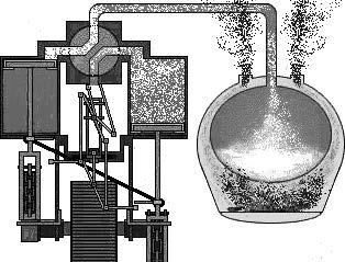 Označení vynálezce parního stroje právem patří Watovi, nejen pro patent, který získal, ale obzvláště pro jeho zásluhy o rozšíření používání parního stroje (obr. 1.4) a jeho další zdokonalování. Jeho nejznámější zdokonalení spočívalo v zavedení dvojčinného parního stroje, kde pomocí šoupátka byla tlaková pára střídavě přiváděna před píst i za píst pracovního válce. Bylo tak možné, aby píst vyvíjel tah, či tlak na ojnici při pohybu oběma směry. Stroj se tak choval jako jednočinný