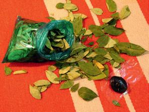 Obr. 1.5 Kokové lístky a tzv. „lejia“, která se při žvýkání