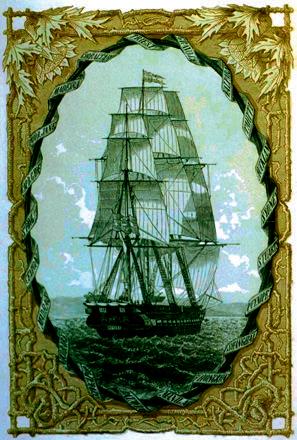 Obr. 1.6 Rakouská fregata Novara, která podnikla v letech 1857–1859 plavbu kolem světa a kromě jiného přírodovědeckého materiálu přivezla do Evropy také náklad kokových lístků