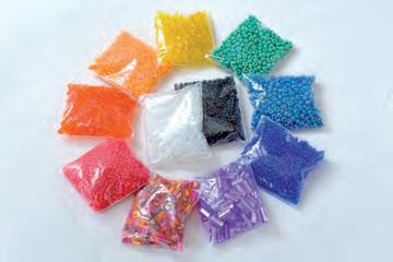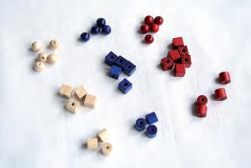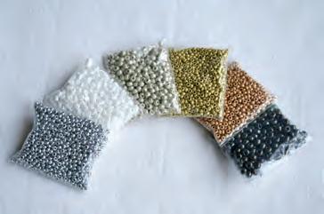 Rokajl, kulaté perličky, dále ve tvaru válečků, čtverců, stáčených čtverců, trianglů, kulatých, hranatých a stáčených čípků a tyčinek, obdélníků, mašliček. Ohňovky, praskačky, broušené, umělohmotné korálky, dřevěné korálky a další atypické korálky, roztříděné v sáčcích dle barev, tvarů a velikostí, s oblými hranami v okolí dírky tak, aby nedošlo k prošoupání a přetržení návleku.