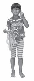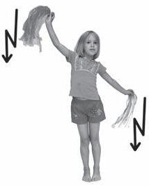 16. Stoj, přednožit pokrčmo levou, rytmické údery třepetalkou v pravé ruce do levého stehna, totéž levou rukou do pravého stehna.
