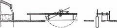 Rovněž tento v Anglii používaný způsob simuluje „ruční“ foukání skleněných válců doplněné mechanickými prvky. Základním výrobním zařízením je opět sklářská píšťala napojená na přívod tlakového vzduchu a umístěná na vozíčkové pojízdné dráze [5, 7, 21]. Po nabrání skloviny v předpecí tavicího agregátu se vyfoukne baňka. Ta je i s píšťalou přemístěna nad pracovní jámu, kde ke konečnému dotvarování dochází jednak foukáním tlakovým vzduchem, jednak působením odstředivé a gravitační síly komíháním nad pracovní jámou. V průběhu tvarování mohla být baňka přemístěna do předpecí, kde došlo k oživení skloviny znovuzahřátím. Další operace jsou totožné s výše popsanými způsoby. Délka vyfouknutých válců je uváděna standardně 1500 mm, výjimečně až 2000 mm. Schéma této technologie je uvedeno na obr. 2.5