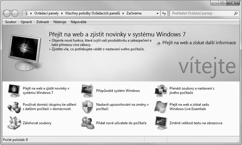 Obrázek 1.6: Okno Začínáme vám umožní přístup k základnímu nastavení počítače