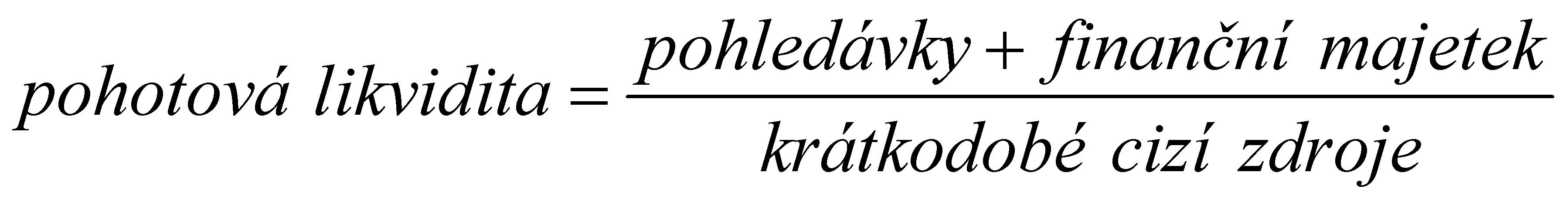 1 V označovaní ukazatelů likvidity se slovenská a česká literatura mírně odlišují. Ukazatel běžná likvidita je slovenskými autory označován jako „celková likvidita“, ukazatel pohotová likvidita je ve slovensky psané literatuře označován jako „běžná likvidita“ a ukazatel hotovostní likvidita je označován jako „pohotová likvidita“. Podrobněji viz např. Kralovič a Vlachynský (2006), Zalai a kol. (2010).
