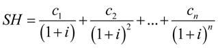 Současná hodnota (SH) = c · diskontní faktor, (2) kde c představuje budoucí peněžní částku (cash flow = peněžní tok).